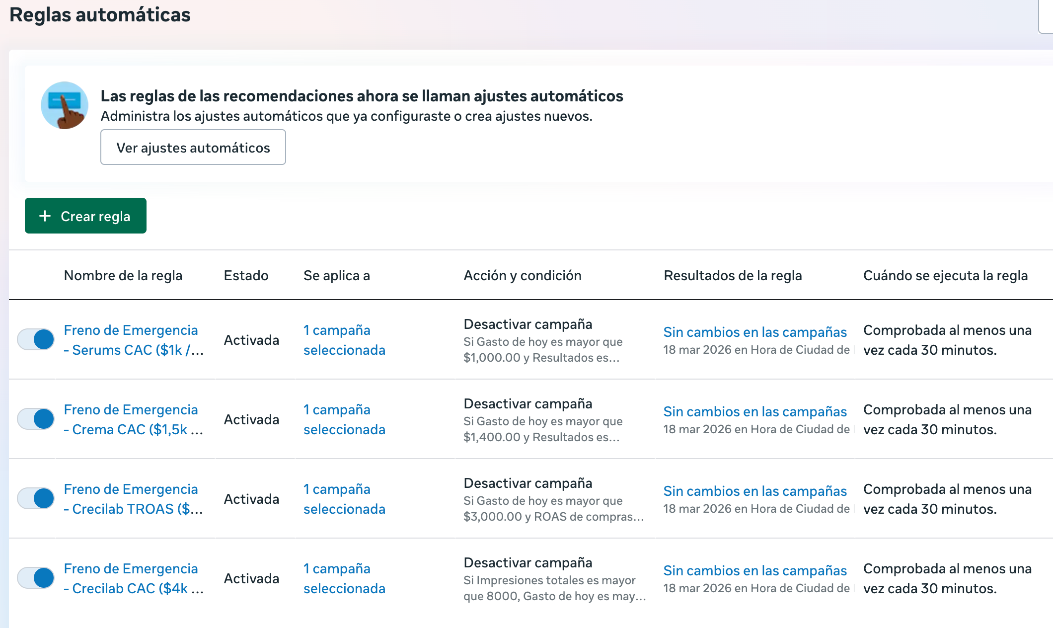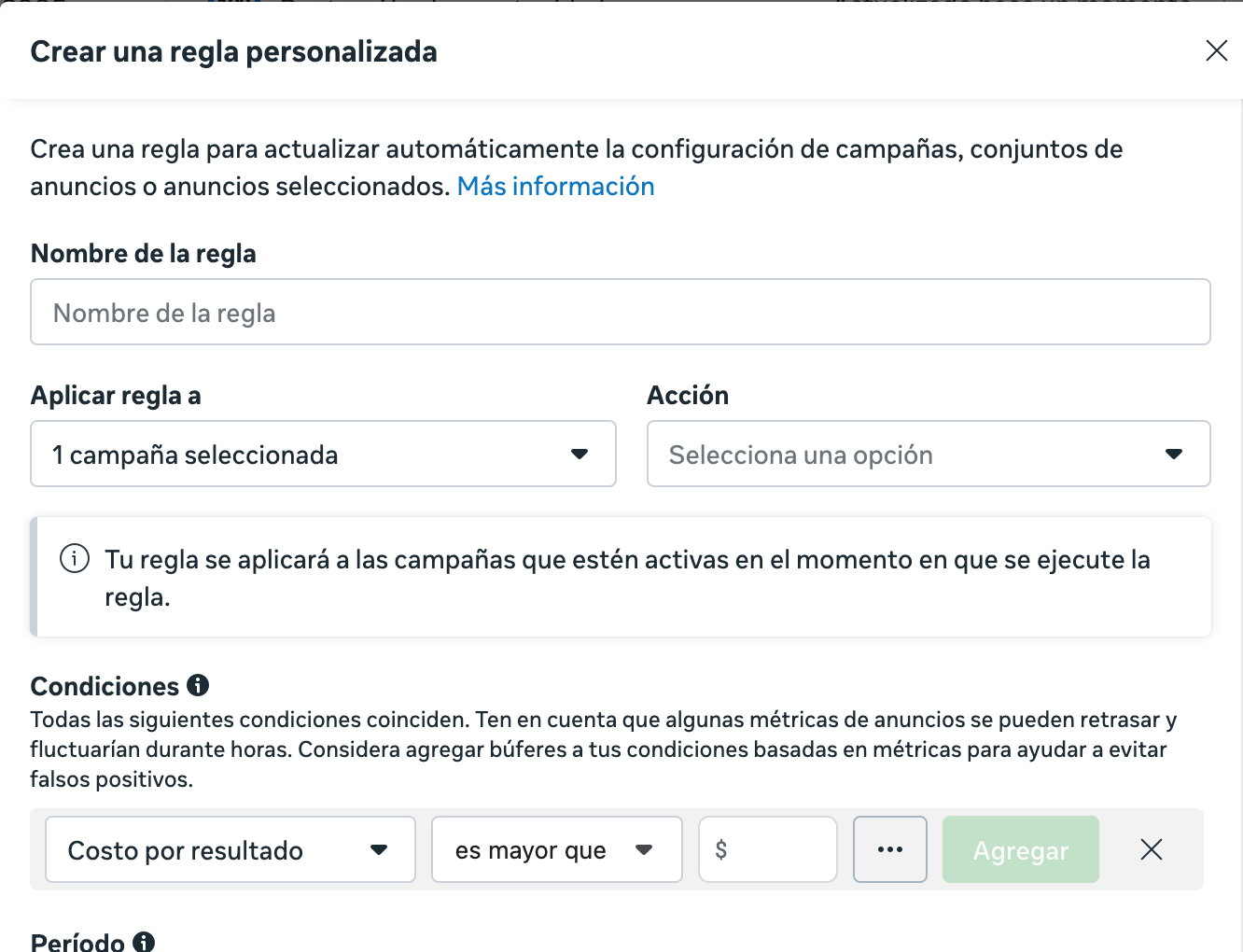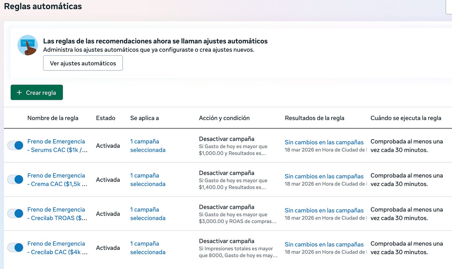 Antes de escalar o dejar campañas corriendo en automático, necesitas crear reglas personalizadas:
