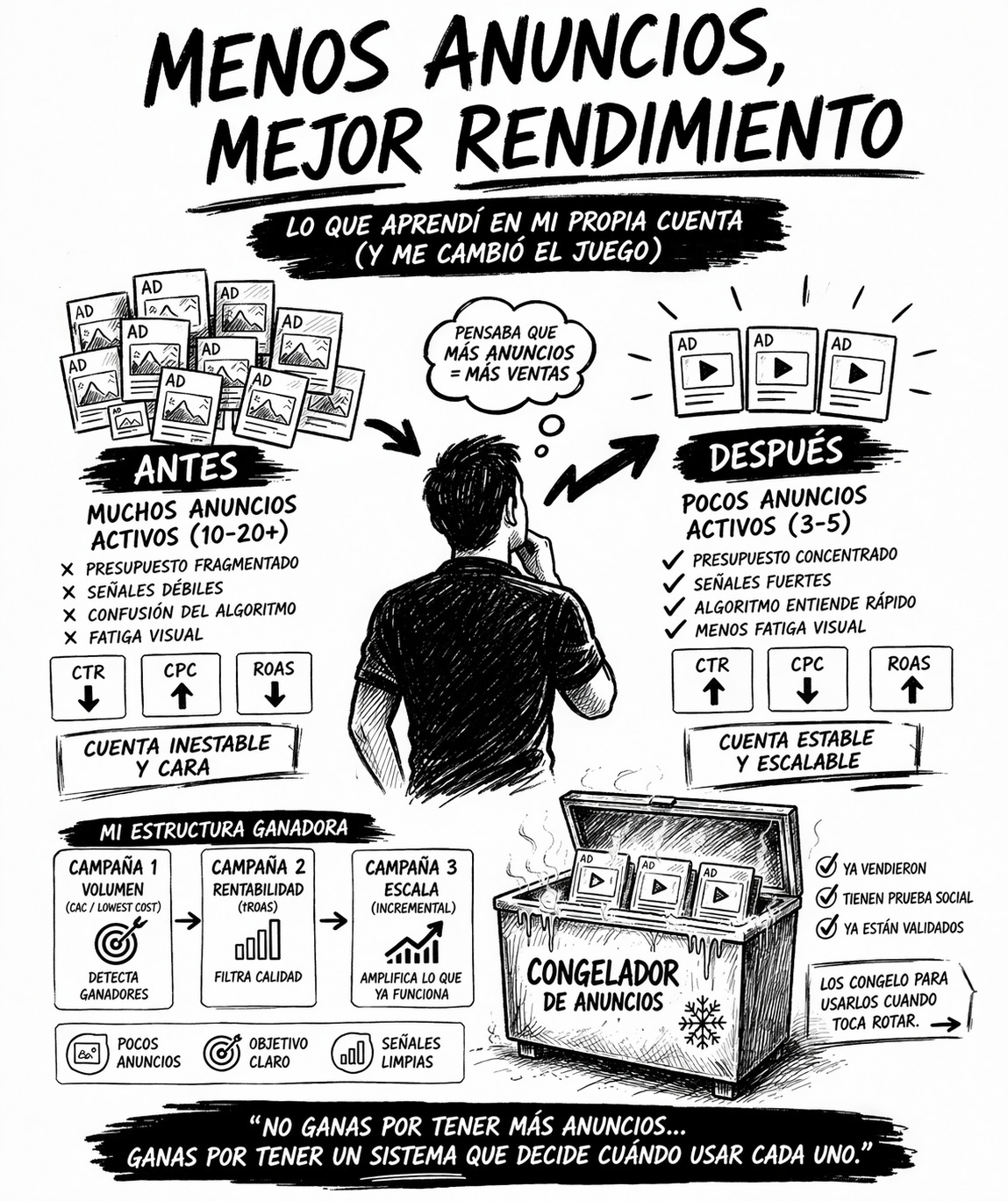 Pensaba que tener muchos anuncios ganadores activos era escalar. Pero en realidad estaba destruyendo el rendimiento de mi cuenta.